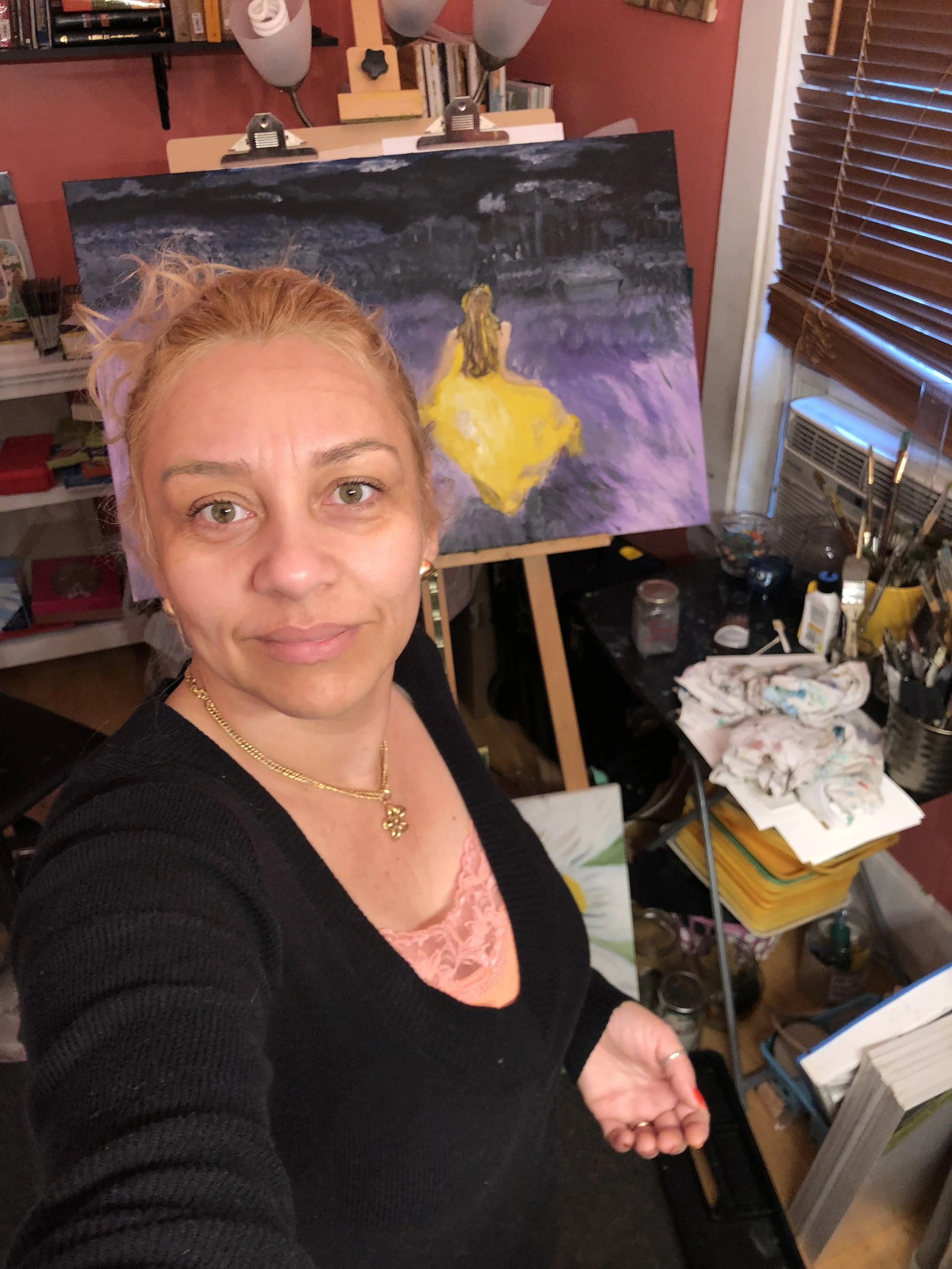 Everything star with a dream... and my paintings are 75% of dreams that I have and 25% visions, wishes and feelings. This painter in particular is a dream a person how’s brings light whenever she goes