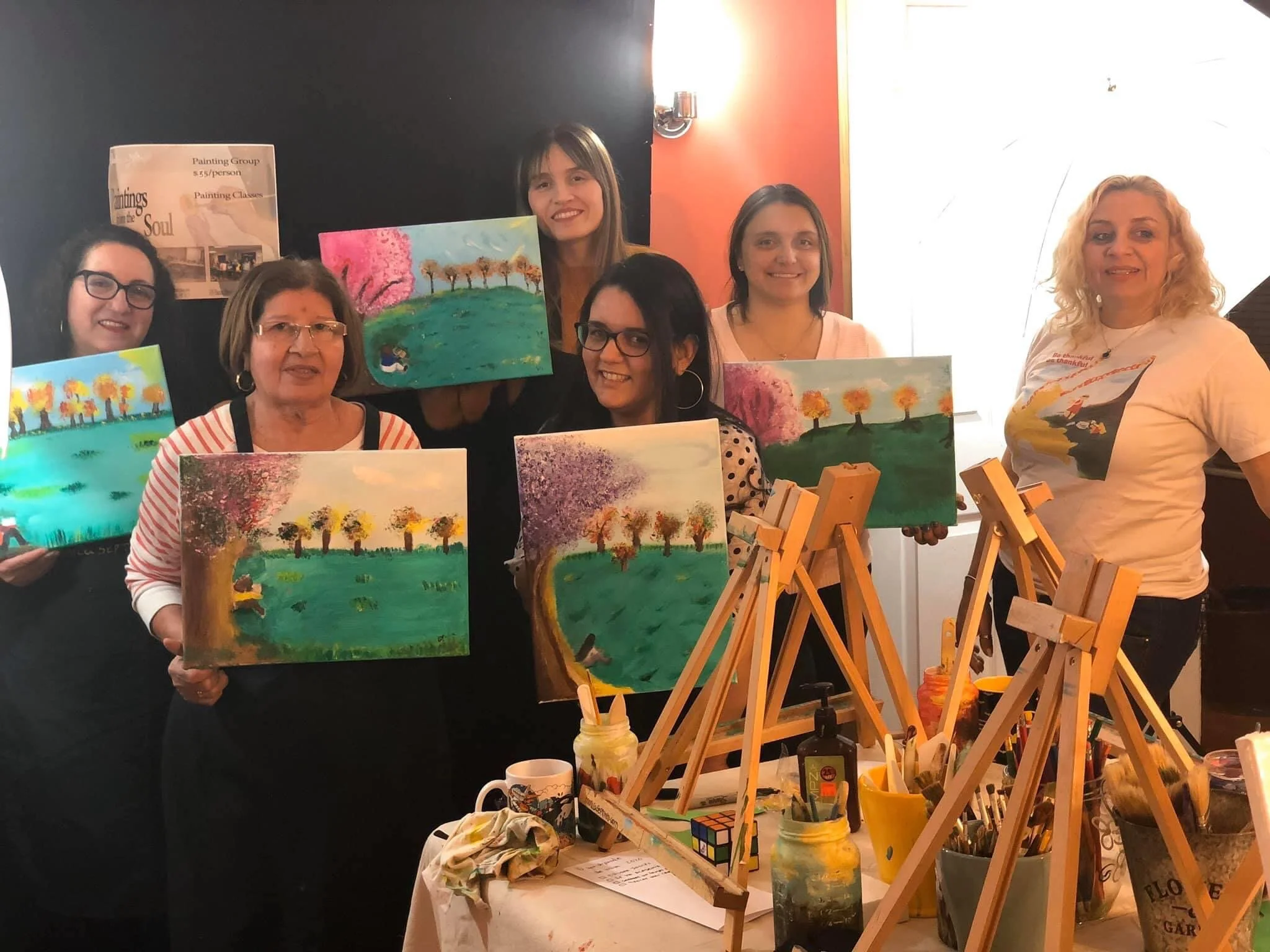 Workshop - class with groups to paint the same inspiring theme.